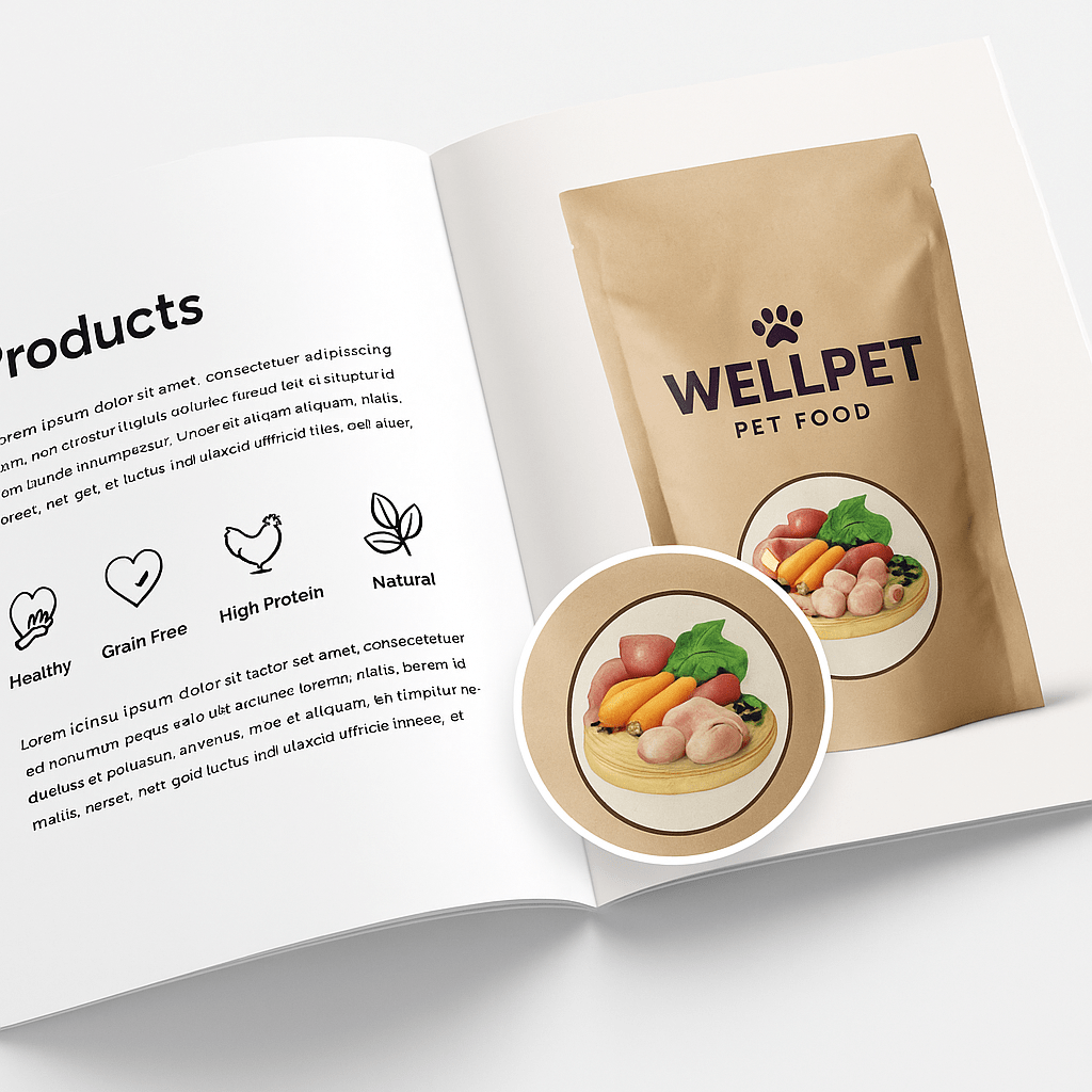 The illustrations were successfully integrated into Wellpet’s packaging as ingredient medallions, helping the brand meet Japanese regulatory requirements while maintaining a premium, trustworthy look. Despite being scaled down in size, the artwork retained clarity and detail, ensuring consumers could quickly recognize the quality ingredients.