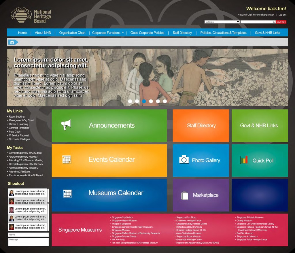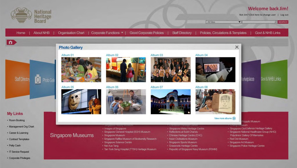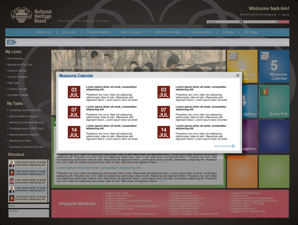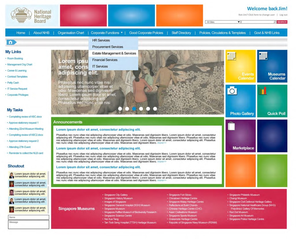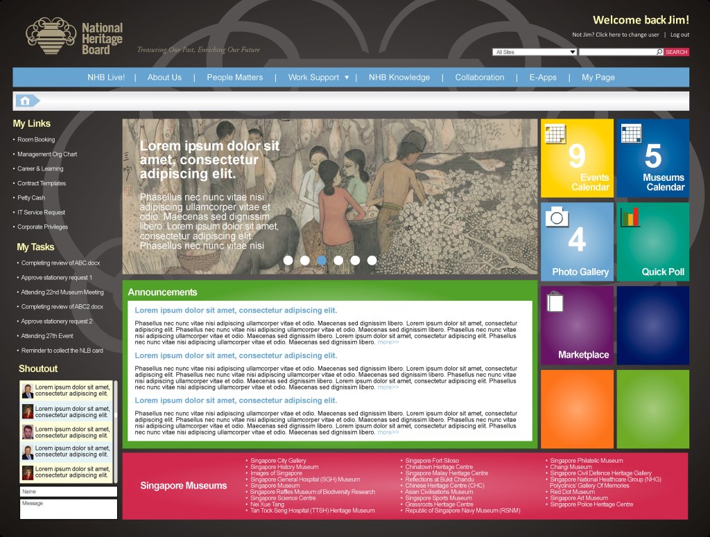 User interface and visual design concepts for Singapore’s National Heritage Board intranet portal