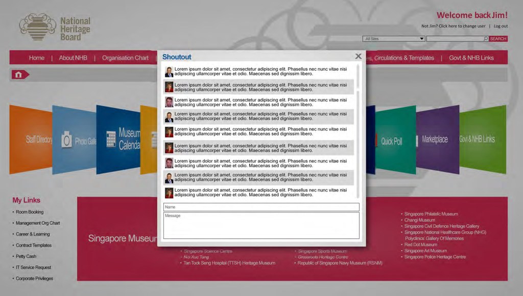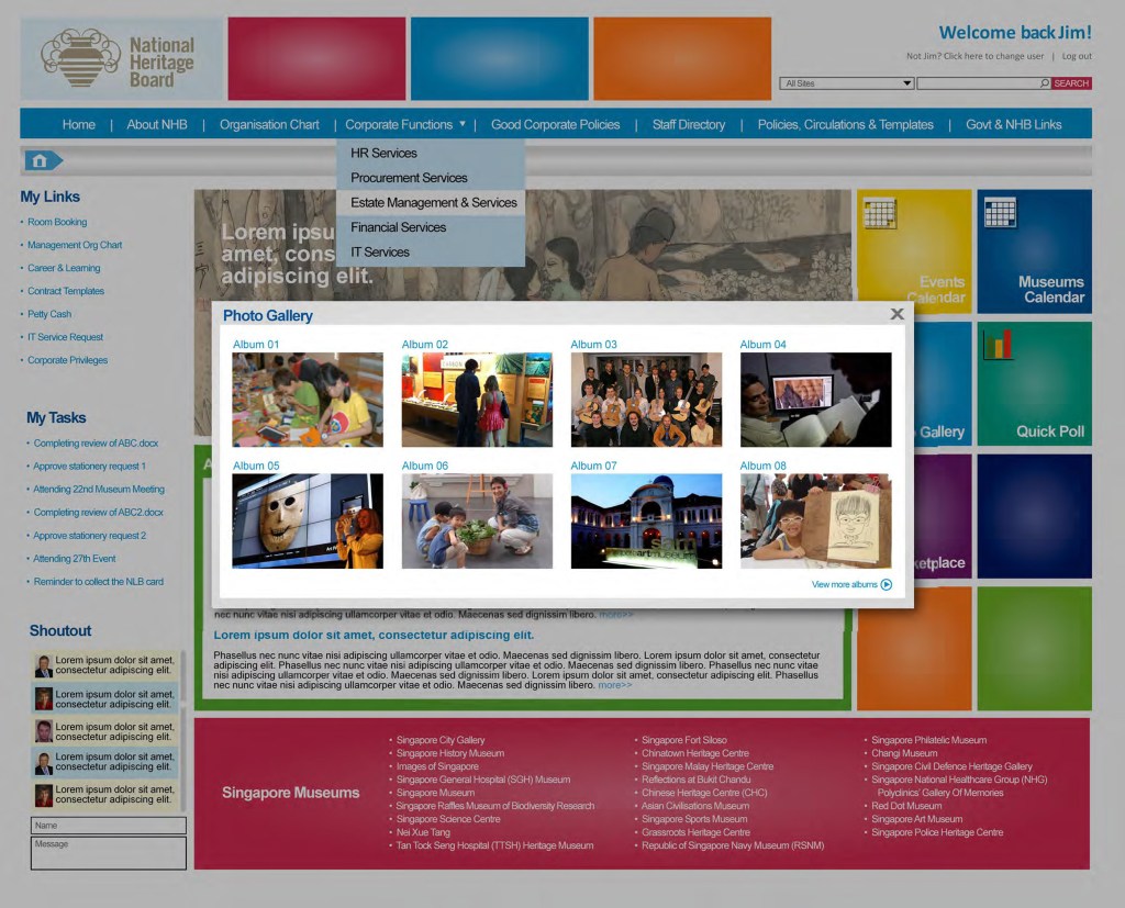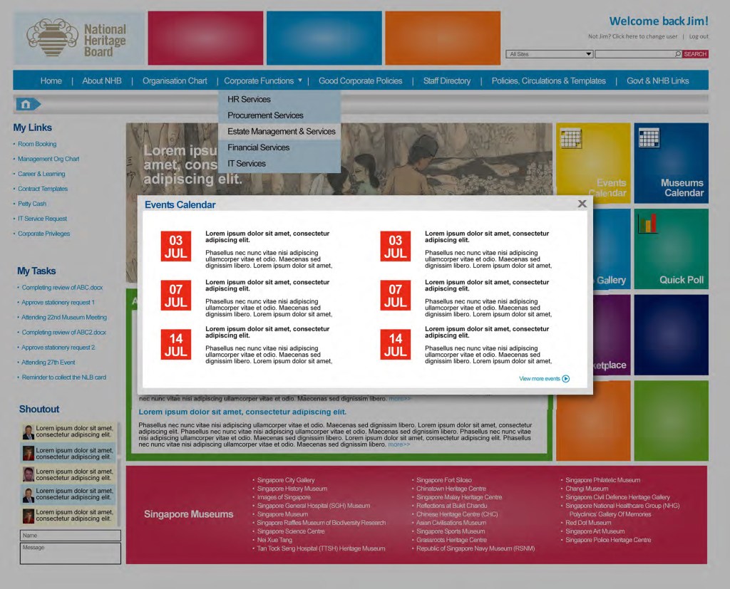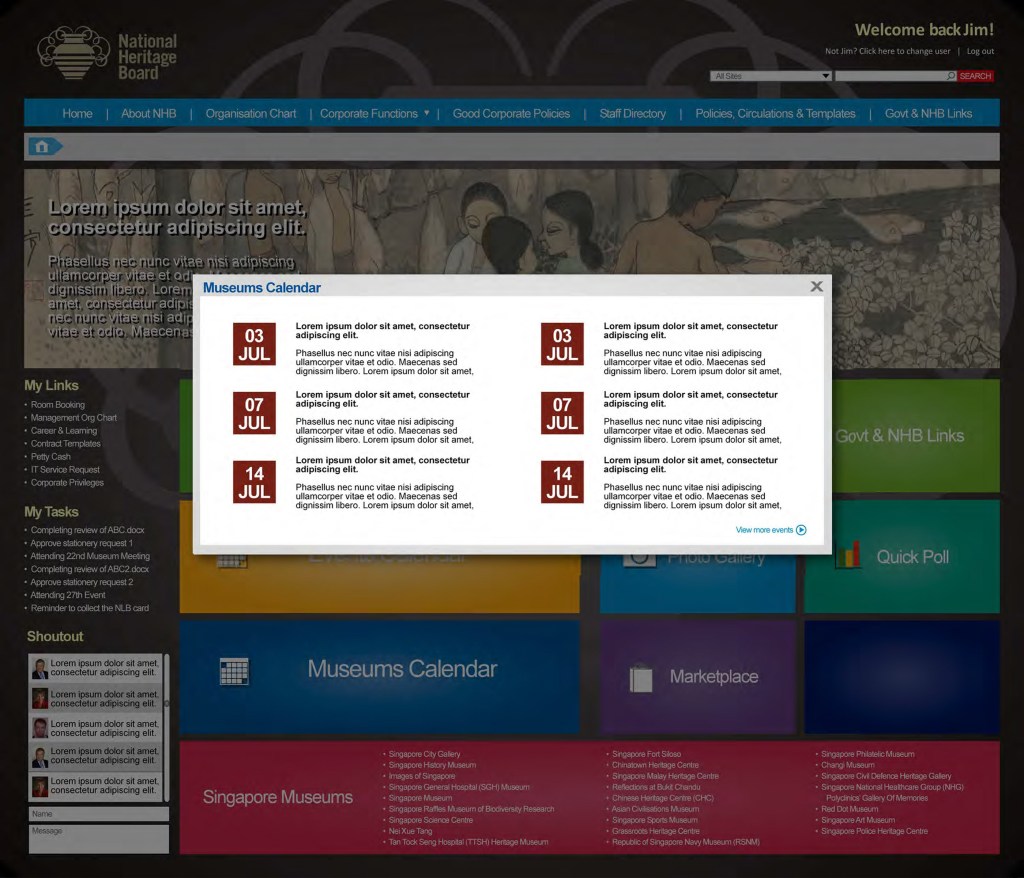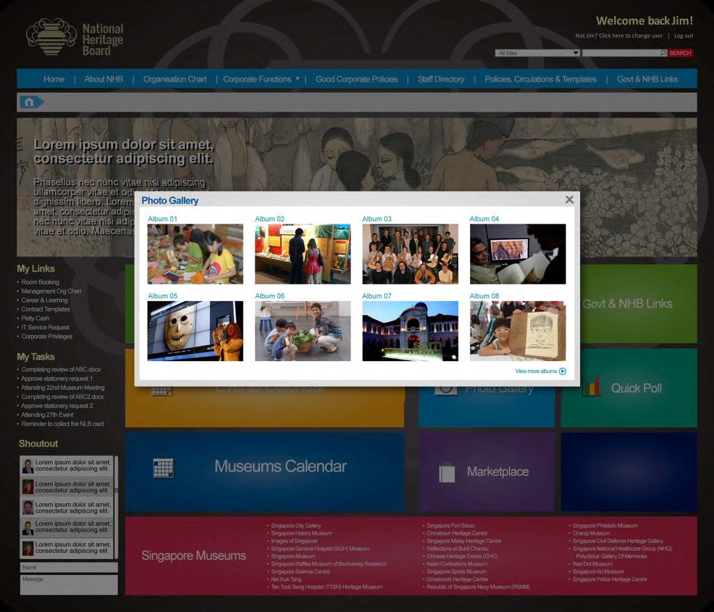 User interface and visual design concepts for Singapore’s National Heritage Board intranet portal